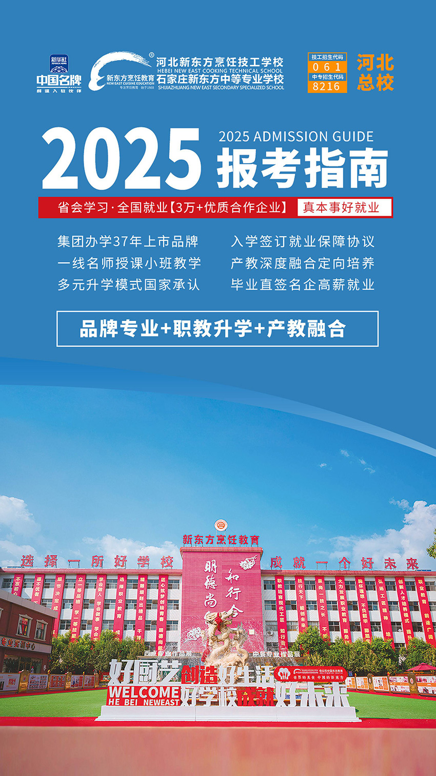 石家庄新东方烹饪学校(石家庄新东方中等专业学校)是由上级行政主管部门批准设立的一所集中专学历服务教育、职业技能培训为一体的全日制学校,是职业技能鉴定所认定的具备厨师培训资格的职业学校,是和全国数千家宾馆、酒店合作委培的国家大型专业烹饪人才培训基地。学校校园环境优美,学术氛围浓郁,教学设施先进,师资力量雄厚,拥有宽敞明亮的理论教学厅、多功能实习大厅、标准化演示大厅、模拟酒店、时尚西点教学店等教学场所,是热爱烹饪事业的有志青年学习烹饪的理想学校。