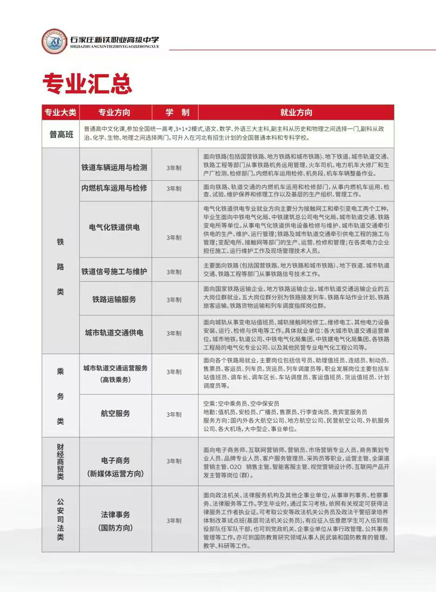 石家庄新铁职业高级中学前身是石家庄新铁轨道交通中专学校,省级重点学校。我校自建校以来,始终秉承“立德树人、质量立校、特色强校”的办学理念,全面实施素质教育:坚持以服务经济为宗旨,以稳定就业为导向,以提高升学质量为重点,健全德技并修、工学结合的育人机制。经过多年的改革创新,我校在师资力量、办学水平及人才培养等方面,取得了长足的进步。于2023年9月28日获得市教育局批准变更为石家庄新铁职业高级中学